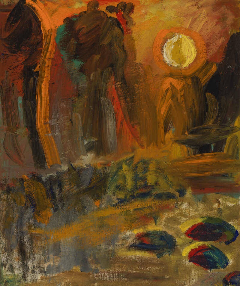 Mauno Markkula expressed his inner world through colour. He painted from imagination, using nature as a raw source of inspiration. As art historian Hilja Roivainen has noted, Markkula’s paintings have been described as intense colour visions, where colour and light together create a cosmic tension. Contemporary critics often called his colours garish or exaggeratedly emotional, though some also admired their lyrical harmony.