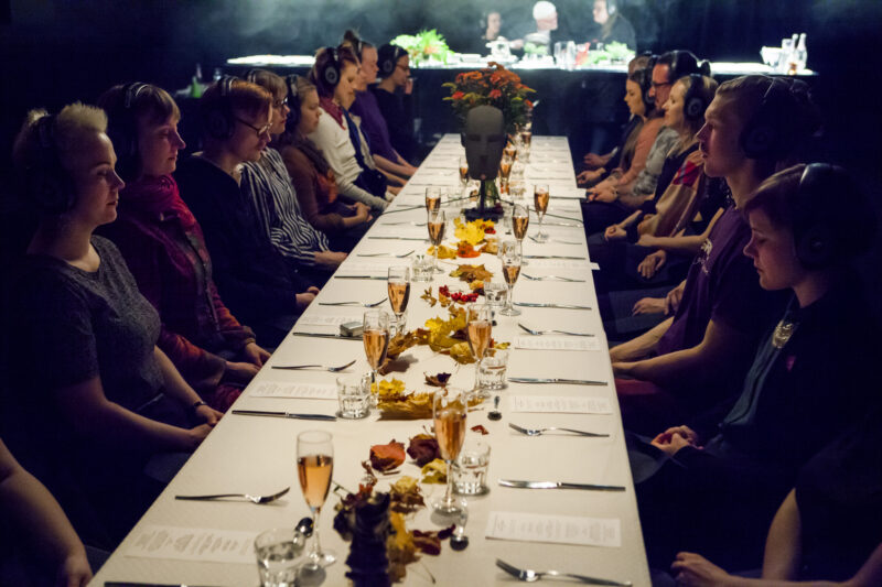 Tablescape (2026) unfolds around a long dinner table, where one can enjoy the offerings of both earth and mind, hear and listen, see and observe, sense and connect. The work explores human participation as part of nature, the environment, and various ecosystems. It comes to life through light, projection, and sound, activating the mental stage of the participant. KOKIMO is an artist collective founded in 2010, whose members work within the fields of performing arts and contemporary art.