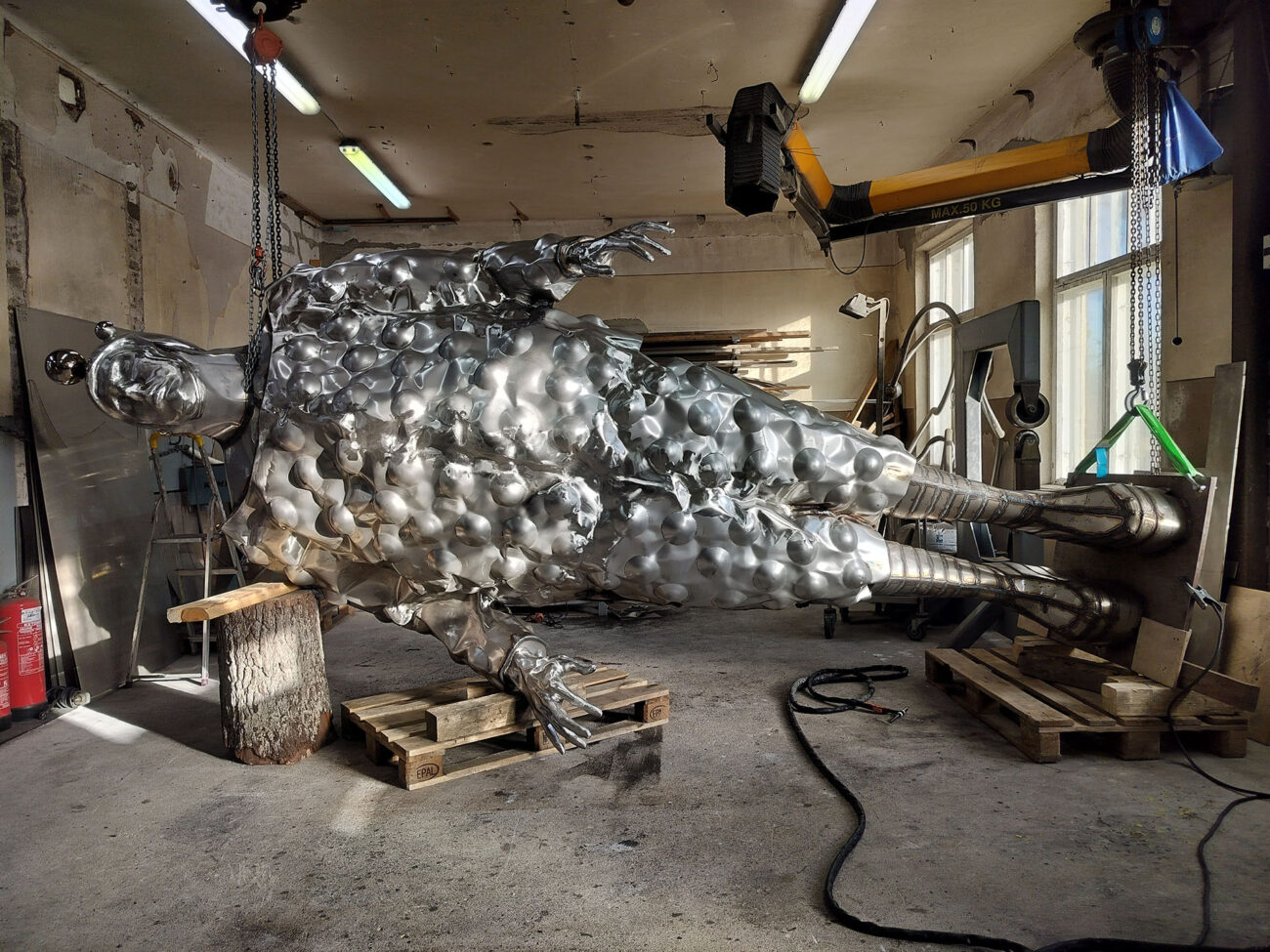 The work’s basic form is enlivened by abundant details, the light playing on them. In bright daylight, the sculpture’s surface is full of bright reflections, and at dusk, even the smallest amount of light is enough to highlight various forms in the sculpture’s surface.